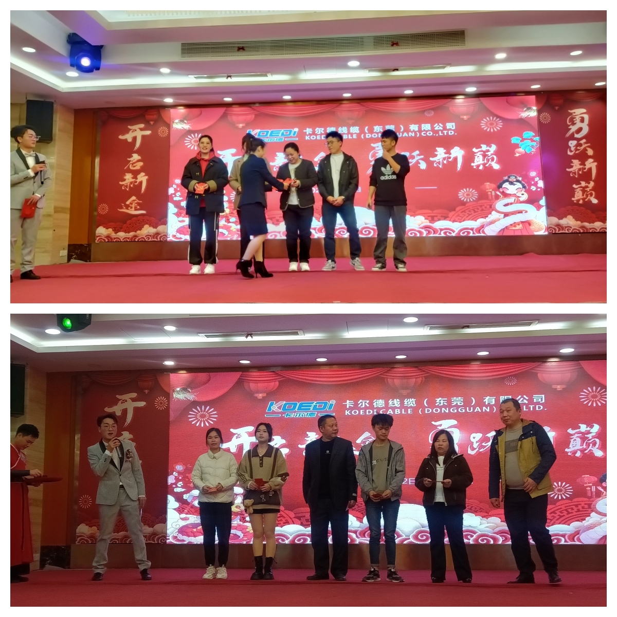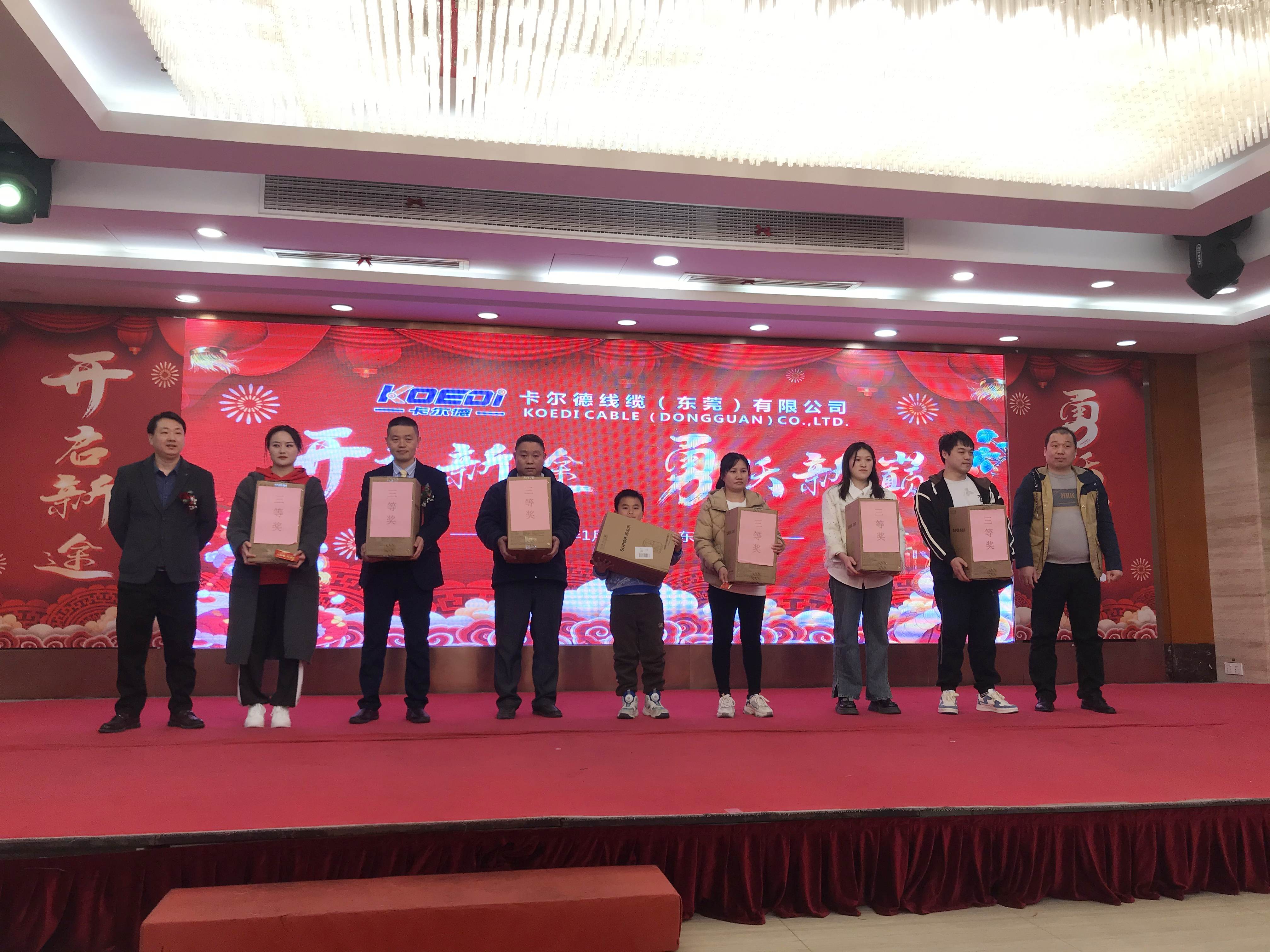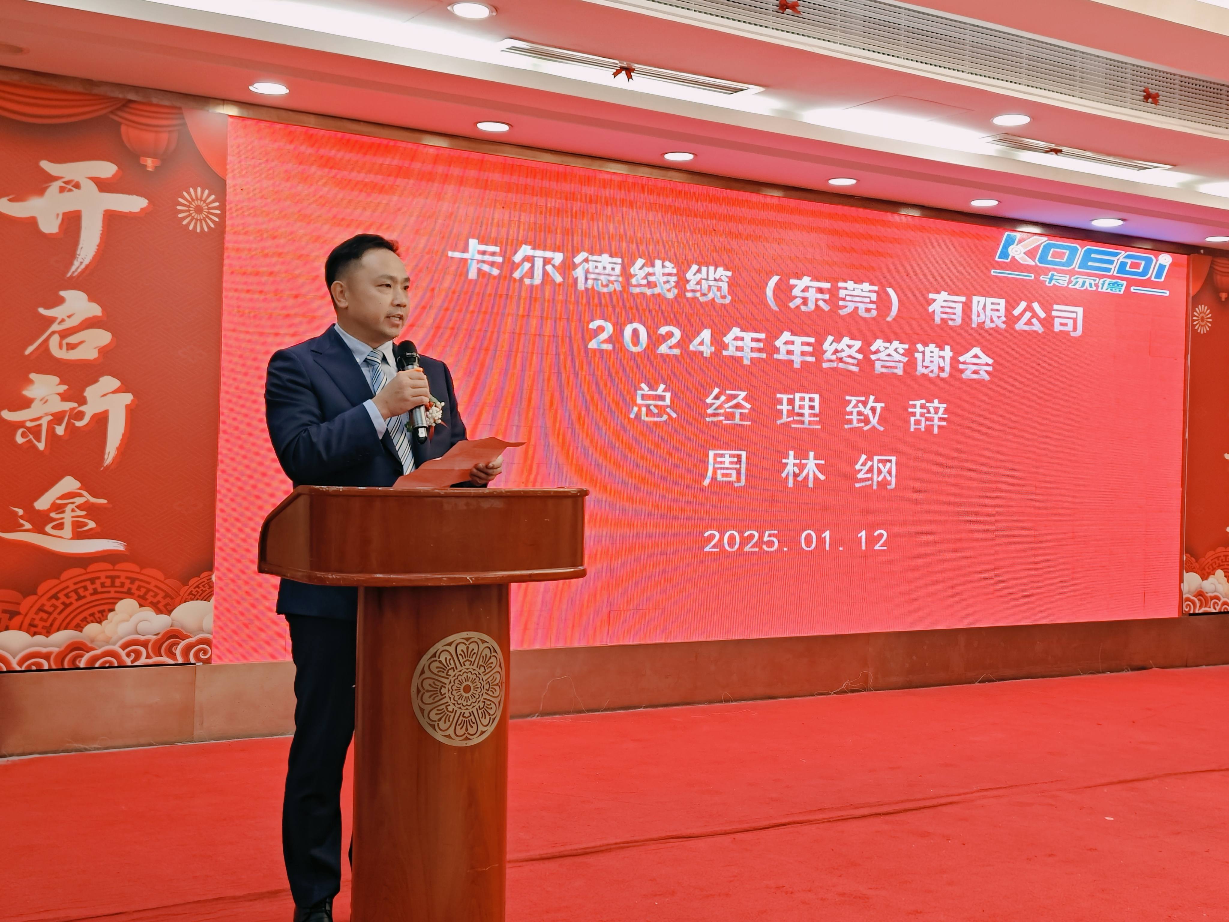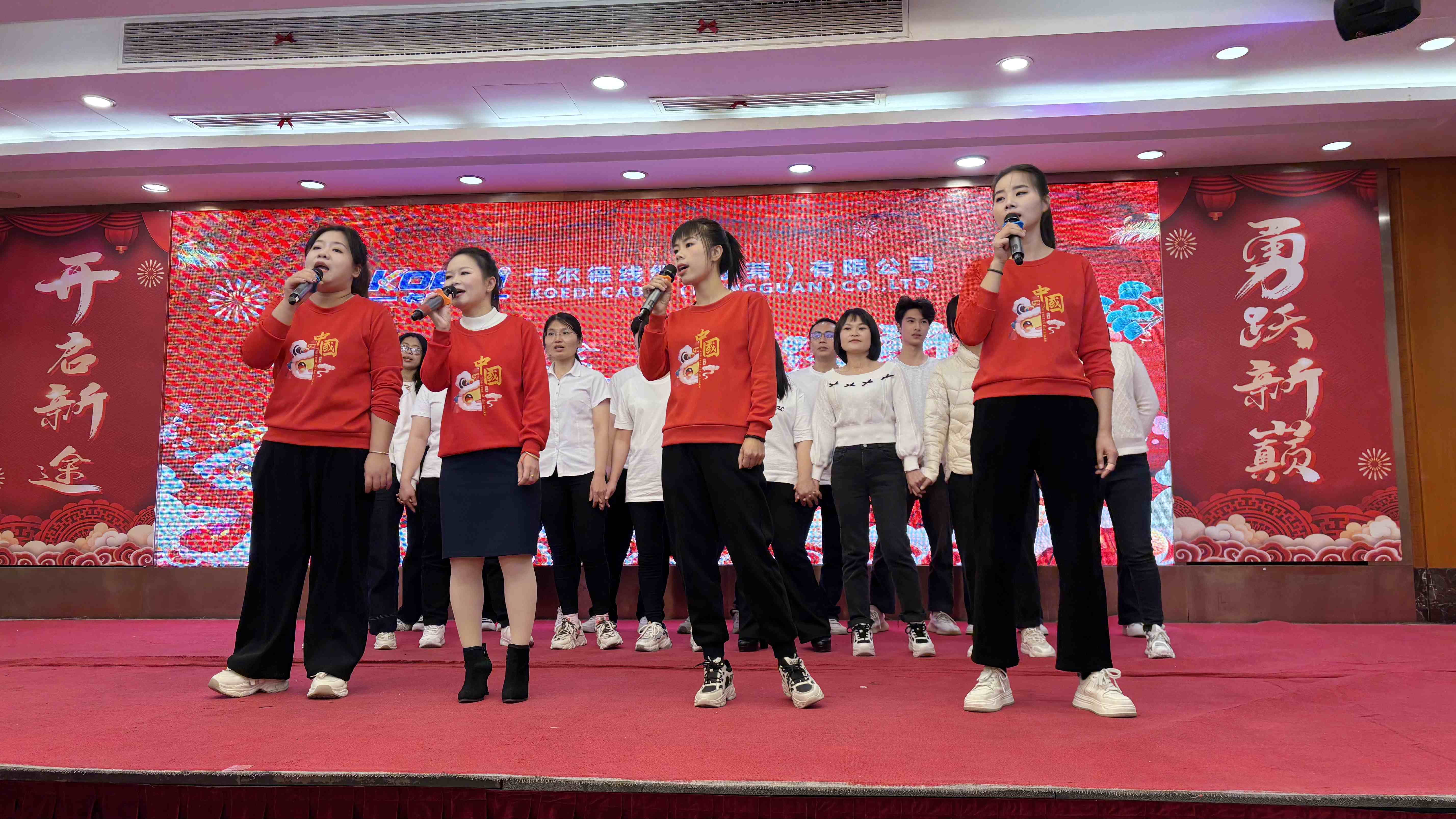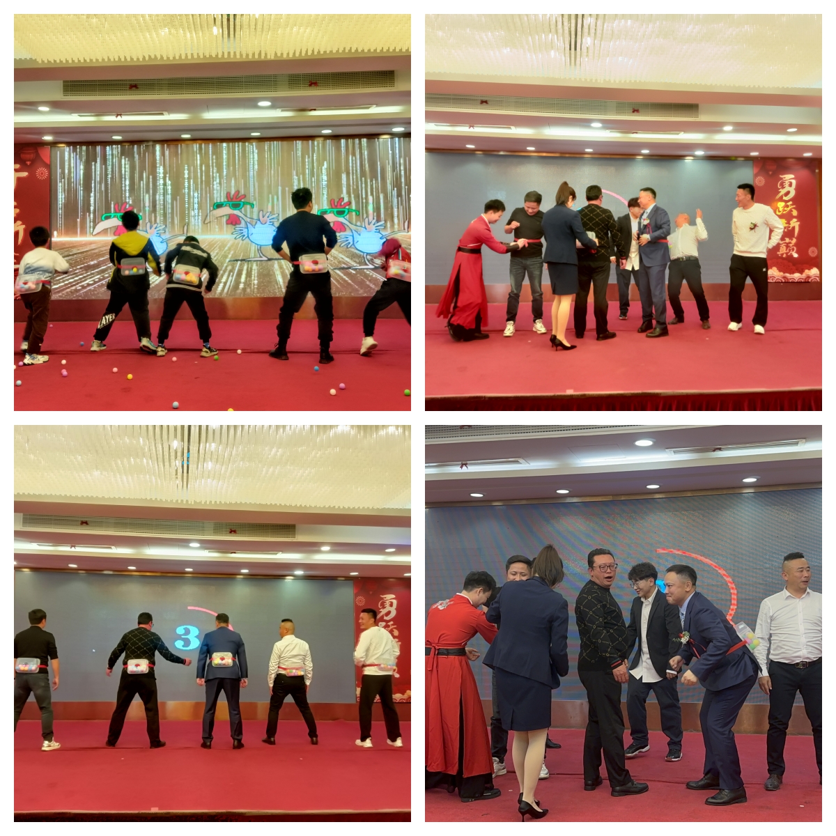 2025年1月12日公司在莞香楼二楼龙凤厅举办年会,18:00全体同事、供应商伙伴和嘉宾合影留念,总经理周林纲致辞回顾过去一年成就。经评选选出8位2024年度优秀员工,周林纲为其颁奖,安宁安副总为服务满五年员工颁发五年奉献奖。年会开场舞《雪龙吟》后晚宴开始,周林纲带领管理层敬酒。晚宴后进入抽奖环节,周海、蔡耘立抽三等奖,张青燕、蔡耘立发福利,周俊、张青燕抽二等奖,节目有《阳光总在风雨后》大合唱、舞蹈《会开花的云》,还有游戏“公鸡下蛋”,杨羽艳抽一等奖,节目四是舞蹈《苹果香》,周林纲抽特等奖,领导和嘉宾带来歌伴舞《上春山》。年会现场充满欢乐,落幕时大家感受团队力量与激情,期待新一年携手谱写新乐章