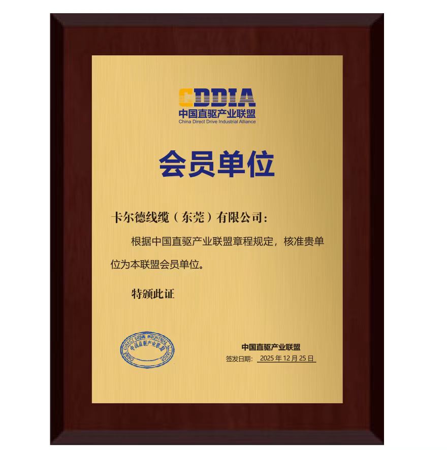 从核心技术研发到全场景产品覆盖,从标准化生产到定制化服务,卡尔德线缆始终围绕客户需求持续创新。未来,卡尔德线缆将以直驱联盟会员单位的身份,深化行业合作,聚焦特种柔性电缆领域的技术突破与产品升级,为直驱行业及千行百业的智能化演进,注入坚实可靠的“线缆动力”!