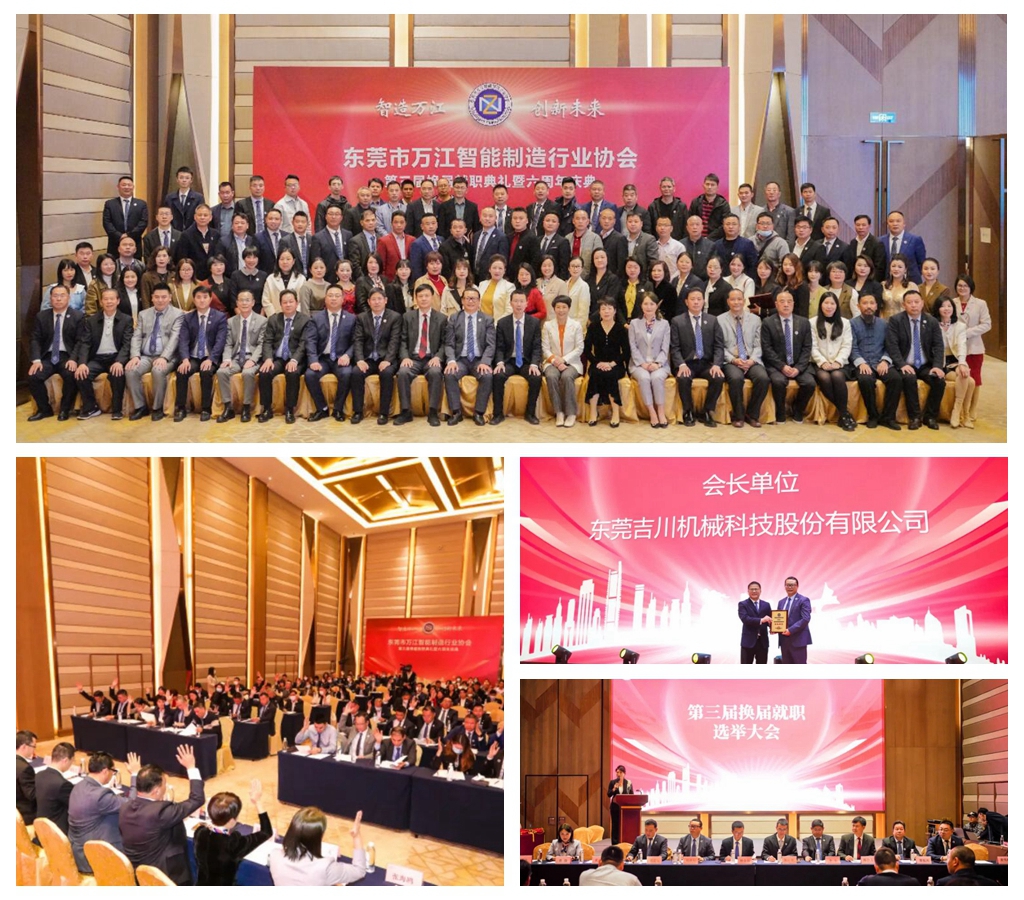 按照会议流程,在当天下午进行的换届就职典礼前,前任会长刘济川代表第二届理事会向大会做总结,刘会长简述了协会围绕着六大服务功能(人才、政策、市场、技术、金融、品牌)以及第二届理事会提出的“责任担当、利众服务、学习创新、快乐共赢”执行理念下,创办了多项主题活动,详细解读协会三年来的工作事迹。随后,万江智能制造行业协会第三届理事会选举大会顺利进行,在政府相关领导现场监督管理下,全体会员的见证下,经过现场投票、唱票,东莞吉川机械科技股份有限公司董事长刘济川当选为第三届会长,我司卡尔德线缆(东莞)有限公司总经理周林纲先生当选为万江智能制造行业协会第三届理事会副会长之一,在此表示祝贺!