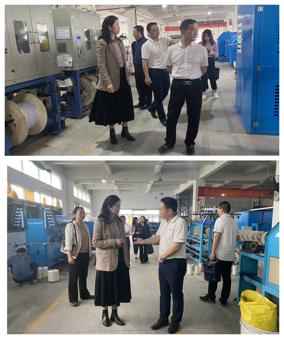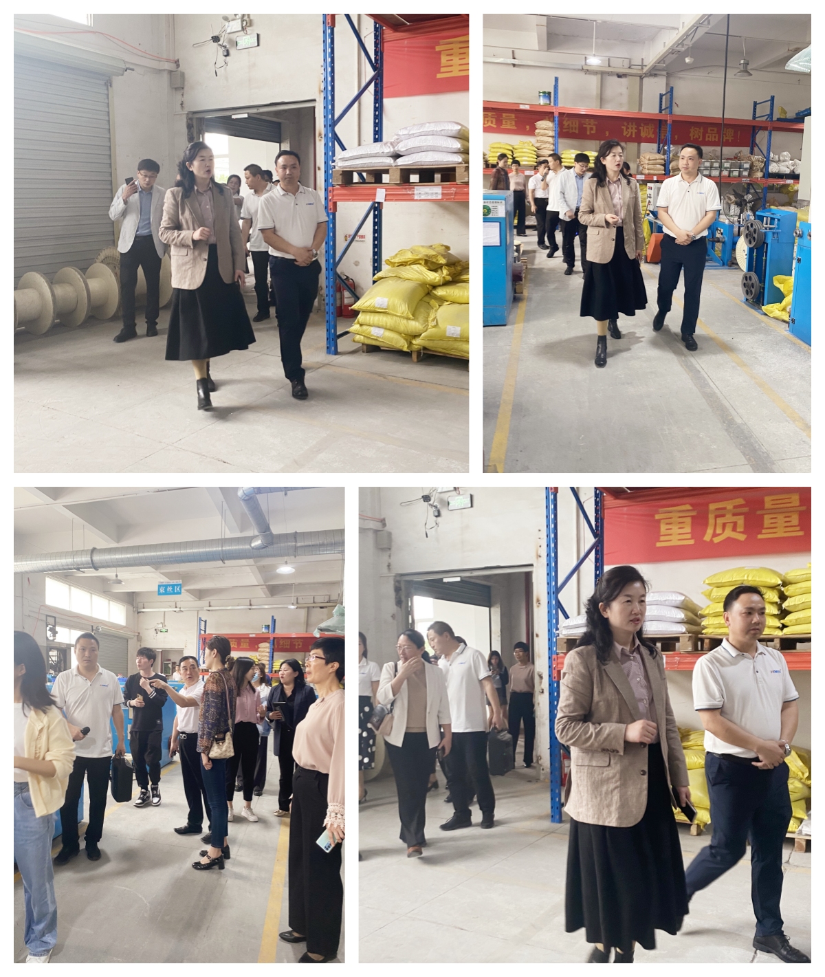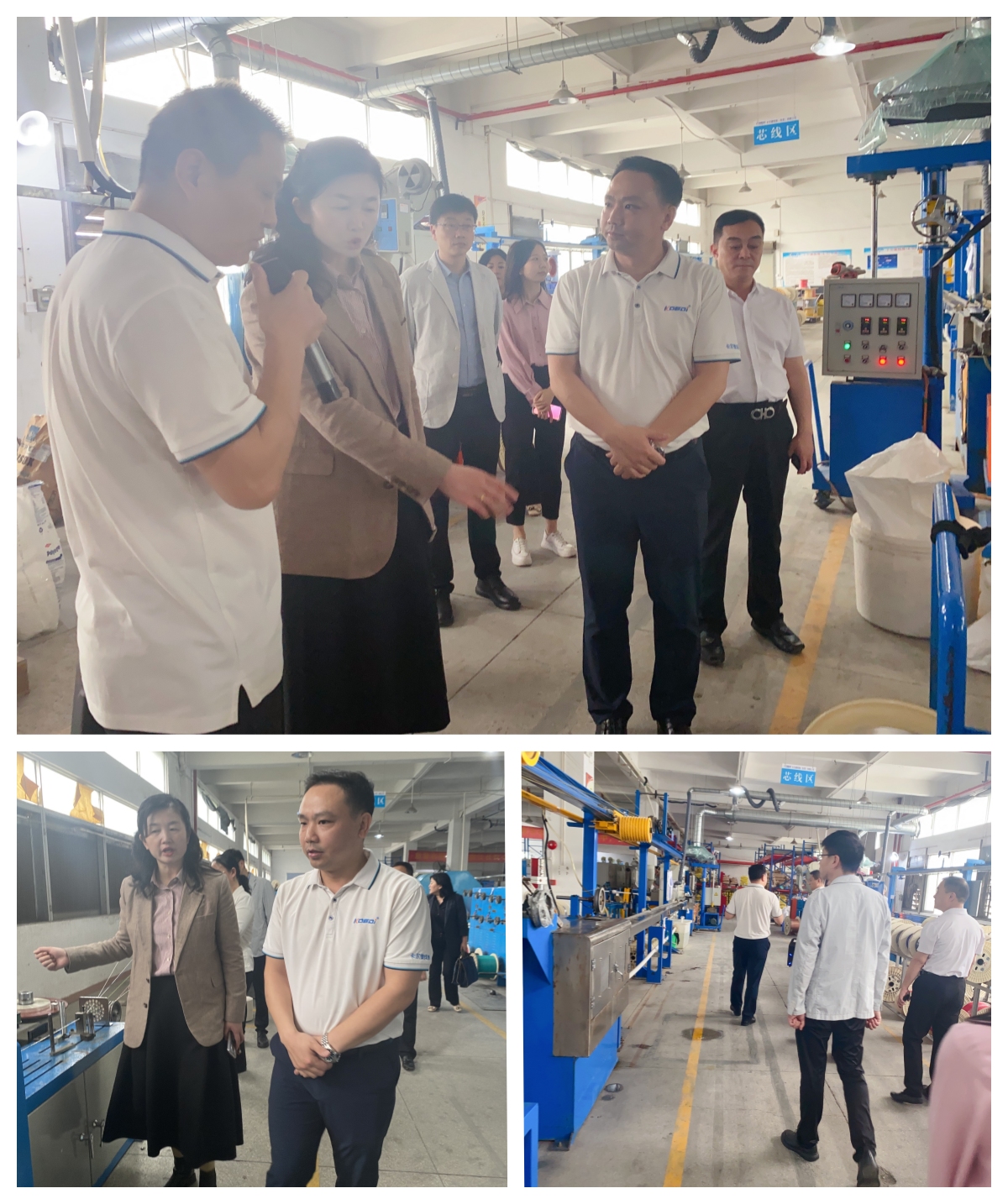 公司总经理周林纲和公司副总经理杨羽艳、安宁热情接待了考擦组一行,并引领来访领导们深入实验室、芯线生产、成缆总绞以及外被压出现场检查各项工作,详细的查看了解我司的产品研发、销售管理运营等情况。