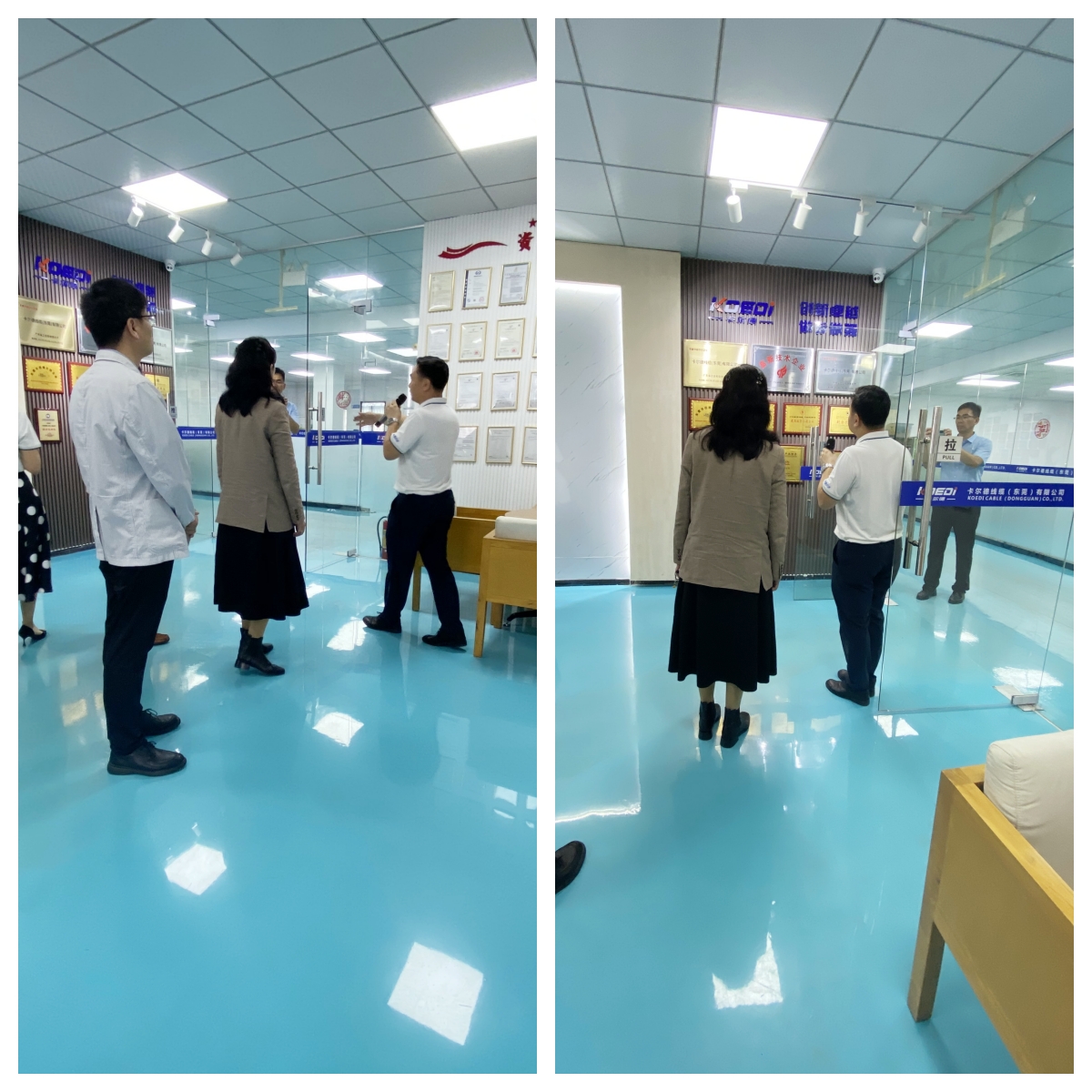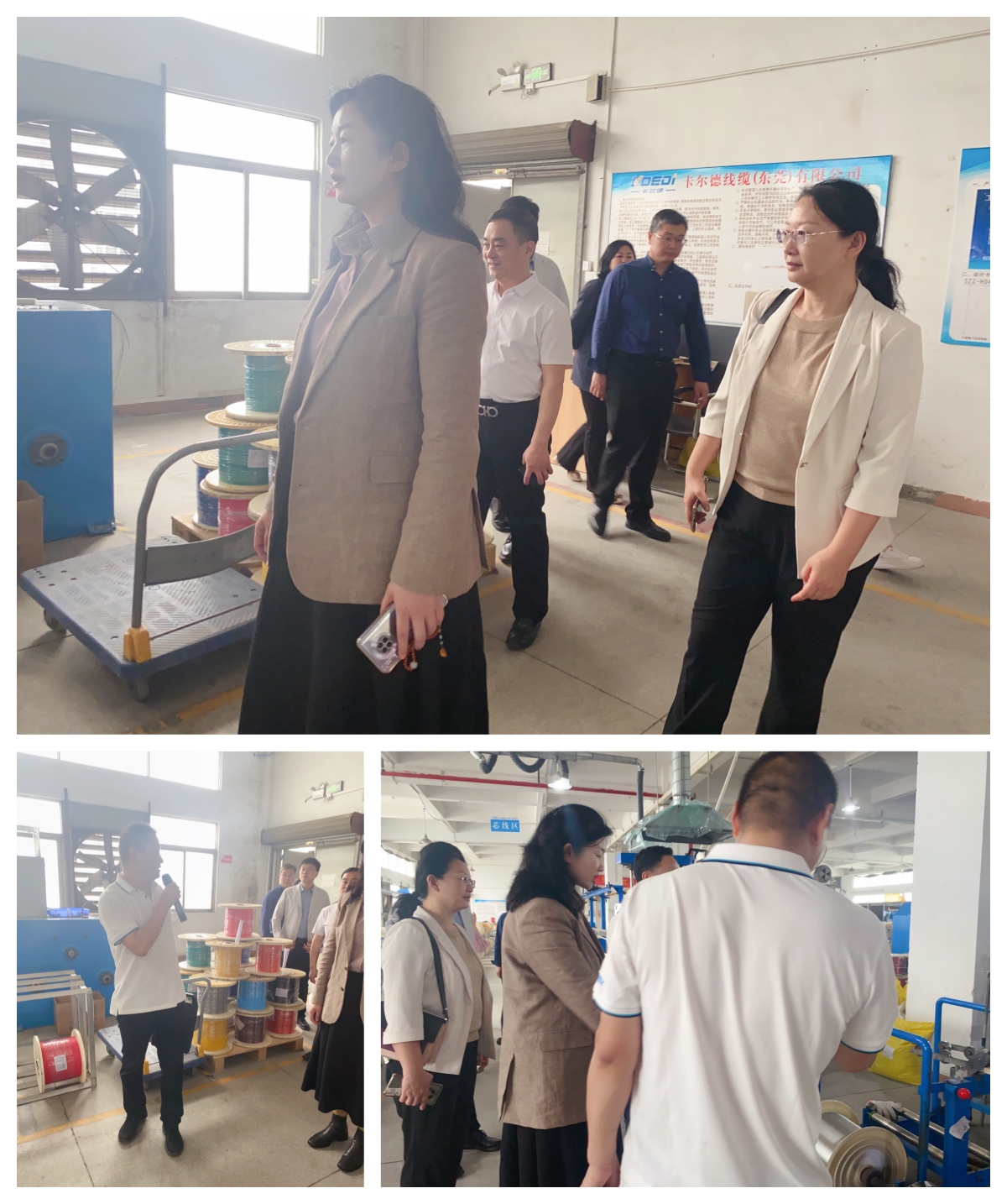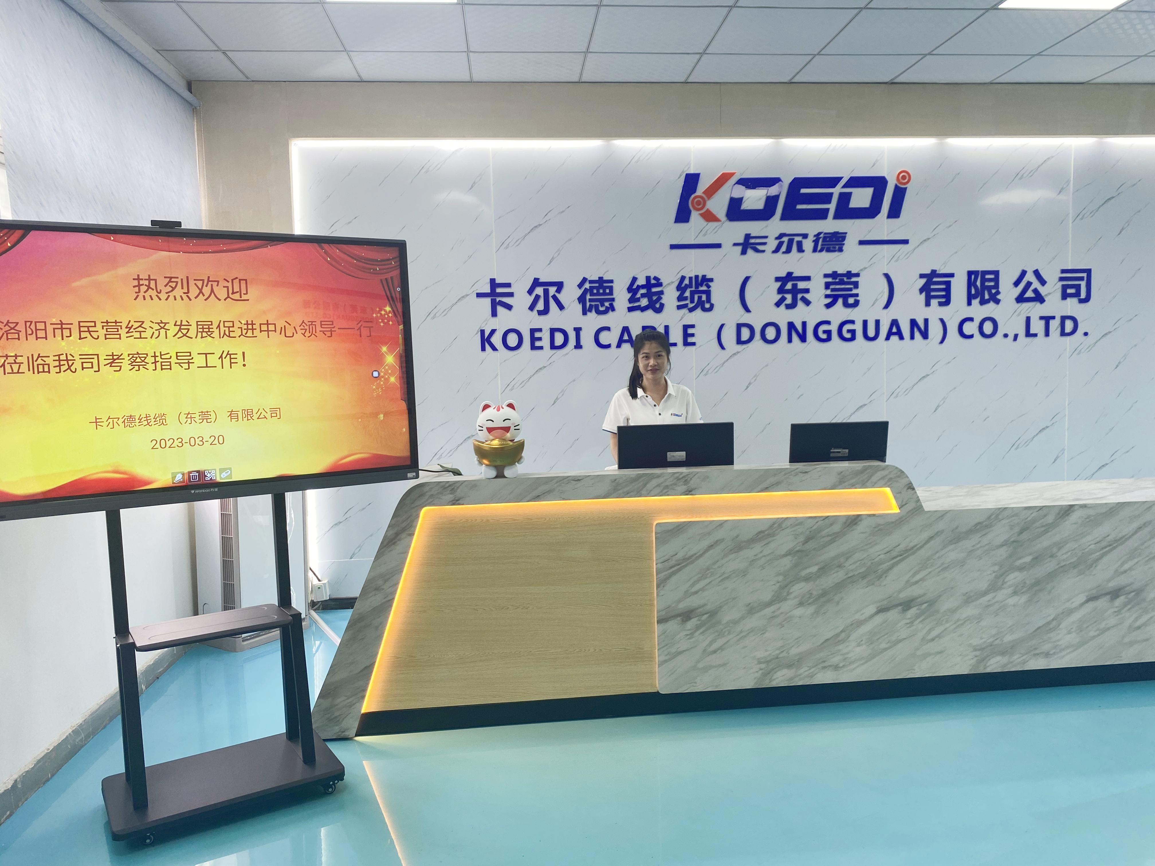 热烈欢迎洛阳市民营经济发展促进中心张晓莉主任(正处级)、洛阳市委组织部杨晓亮科长、洛阳市委政策研究室孔昭科长 等一行十三人在东莞市工信局刘瑜处长、曹磊主任、陈浩成科长、万江区工信局叶副局长陪同下莅临卡尔德线缆考察指导工作