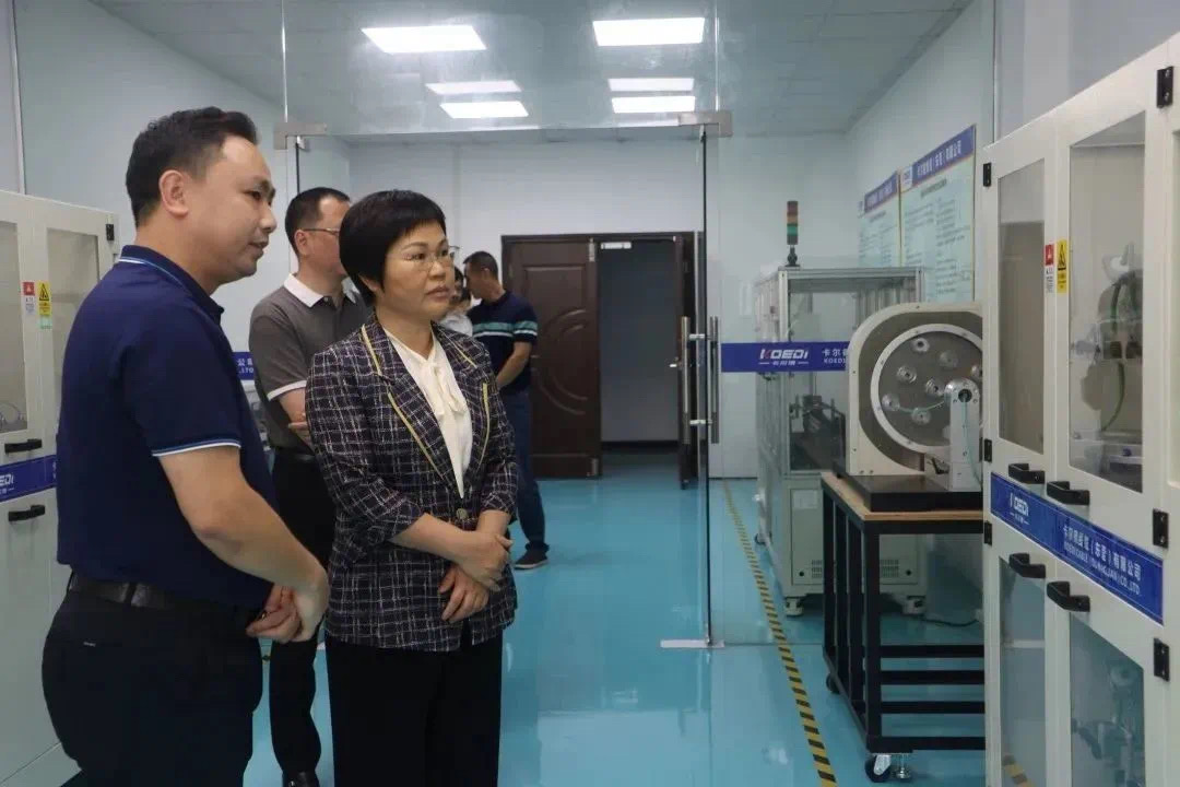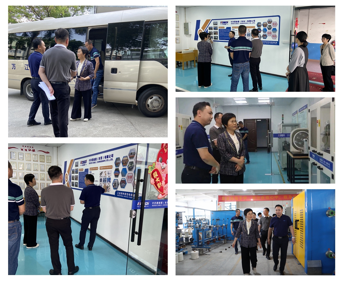 5月17日下午,东莞市万江街道党工委书记袁丽群、霍永健党委、党政综合办公室(统计办)、经济发展局施小飞、万江街道新和社区书记何伟标等领导来访我司卡尔德线缆进行调研。