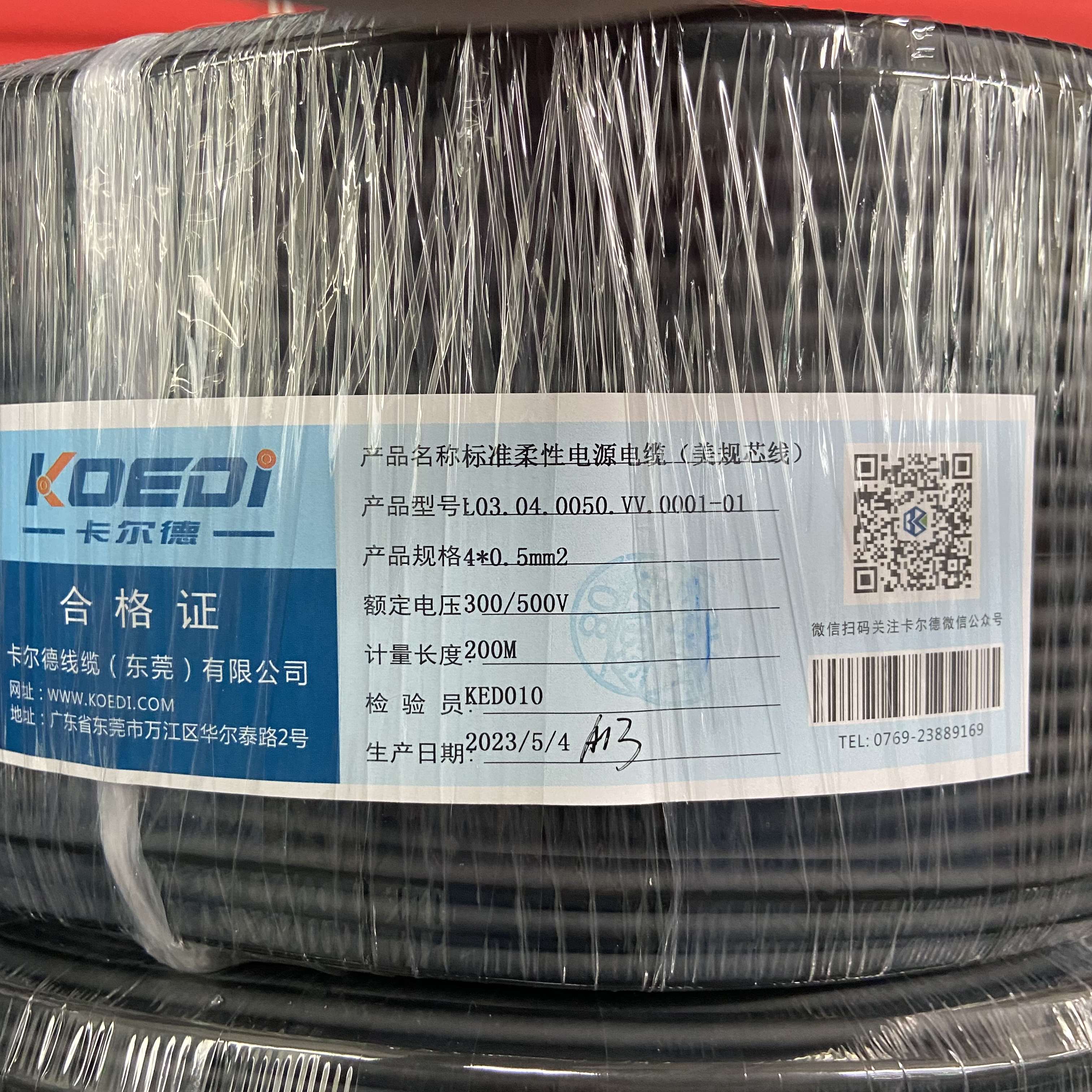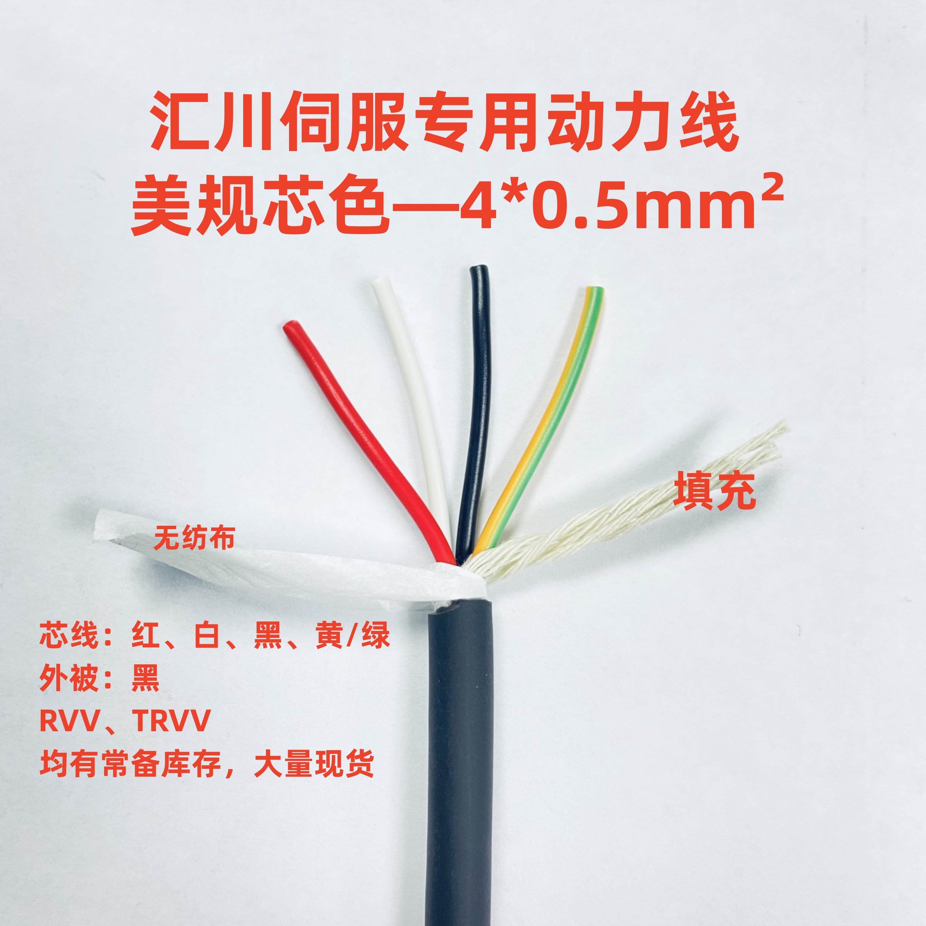 小功率动力线4*0.5mm² 导体28/0.15 绝缘外径:1.9 OD:6.5 美规芯色
