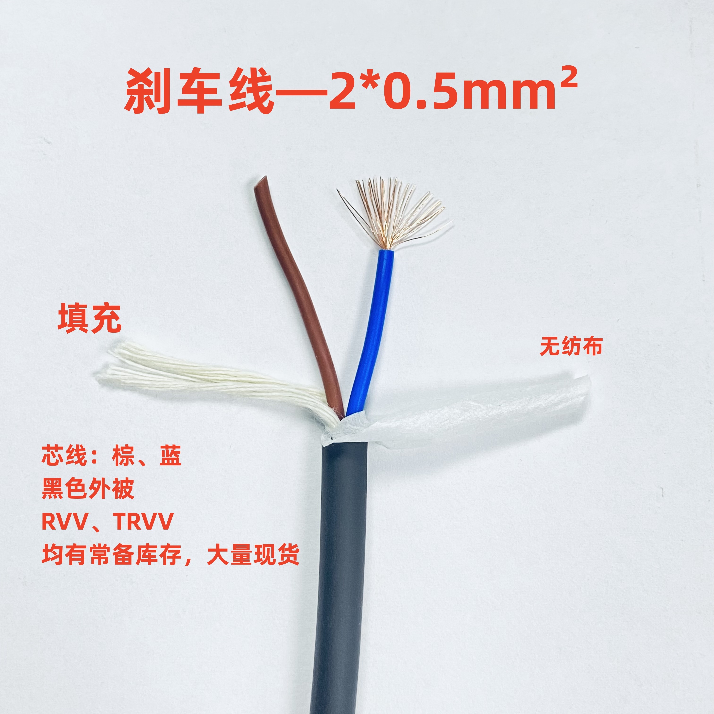 小功率刹车线2*0.5mm² 导体28/0.15 绝缘外径:1.9 OD:5.6